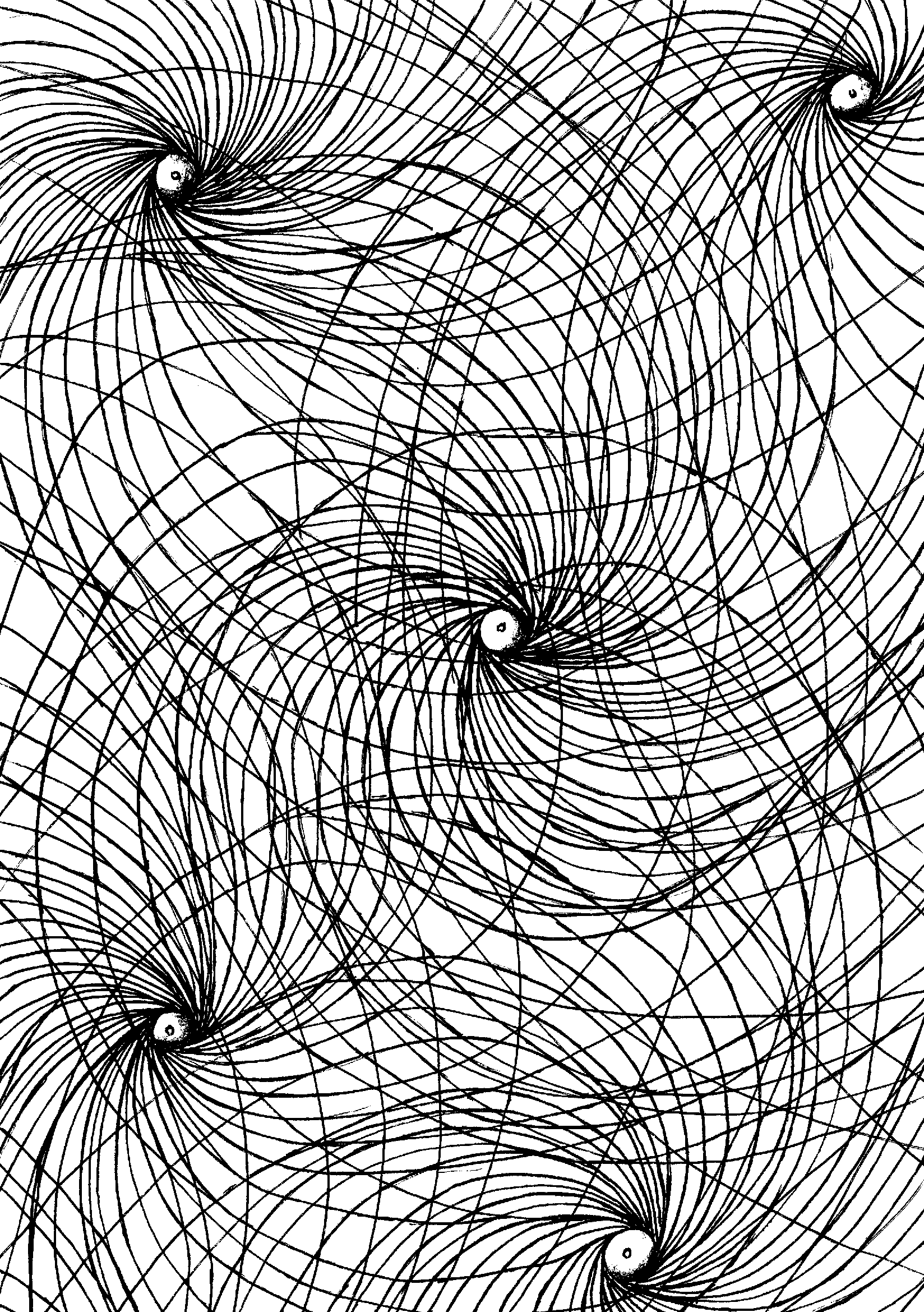 The white background becomes a canvas of tension and release, where each line is a breath, a ripple, a decision. The vortices don’t dominate—they coexist, their influence braided into the fabric of the whole. It feels like a map of emotional gravity, where every center pulls and yields in response to the others.