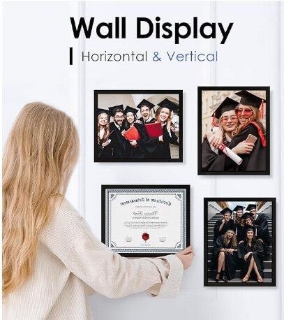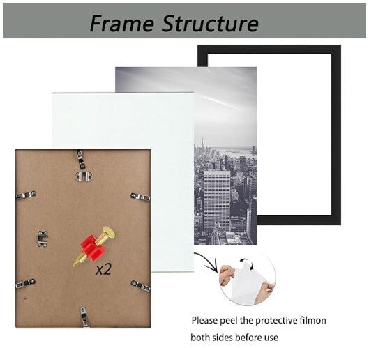 11 x14 Picture Frame in Black - Horizontal and Vertical Formats for Wall Mounting - Simple Design Frame with Shatter Resistant Perspex Perfect for protecting your original frame while traveling to your destination. This temporary frame is good for decoration while you search for the perfect frame.