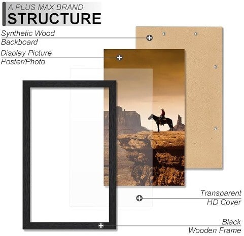 8.5 x14 Picture Frame in Black - Horizontal and Vertical Formats for Wall Mounting - Simple Design Frame with Shatter Resistant Perspex Perfect for protecting your original frame while traveling to your destination. This temporary frame is good for decoration while you search for the perfect frame.