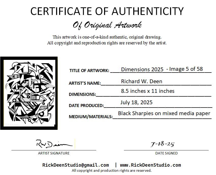 The certificate holder will include the artwork in a protective sleeve with a certificate of authenticity and the expanded narrative in this web page. This below is a sample of the first piece in the collection, but you will get the equivalent of the one you reserve.