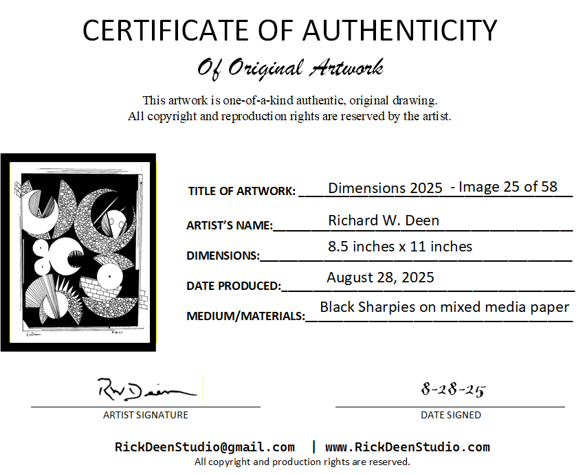 The certificate holder will include the artwork in a protective sleeve with a certificate of authenticity and the expanded narrative in this web page. This below is a sample of the first piece in the collection, but you will get the equivalent of the one you reserve.